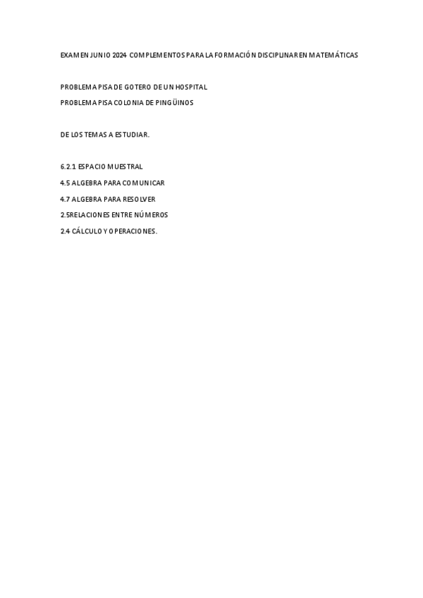 He publicado nuevos examenes de 1º Complementos para la formación disciplinar en la especialidad de Matemáticas: EXAMEN-JUNIO-24-COMPLEMENTOS.pdf