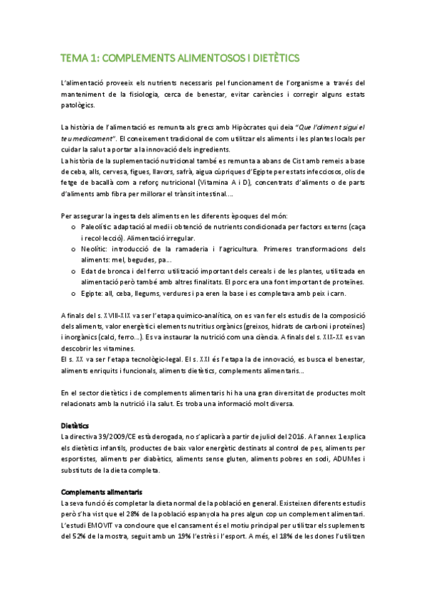 He publicado nuevos apuntes de 4º Complements Alimentosos, Productes Dietètics i Aliments Funcionals: BLOC-1.pdf