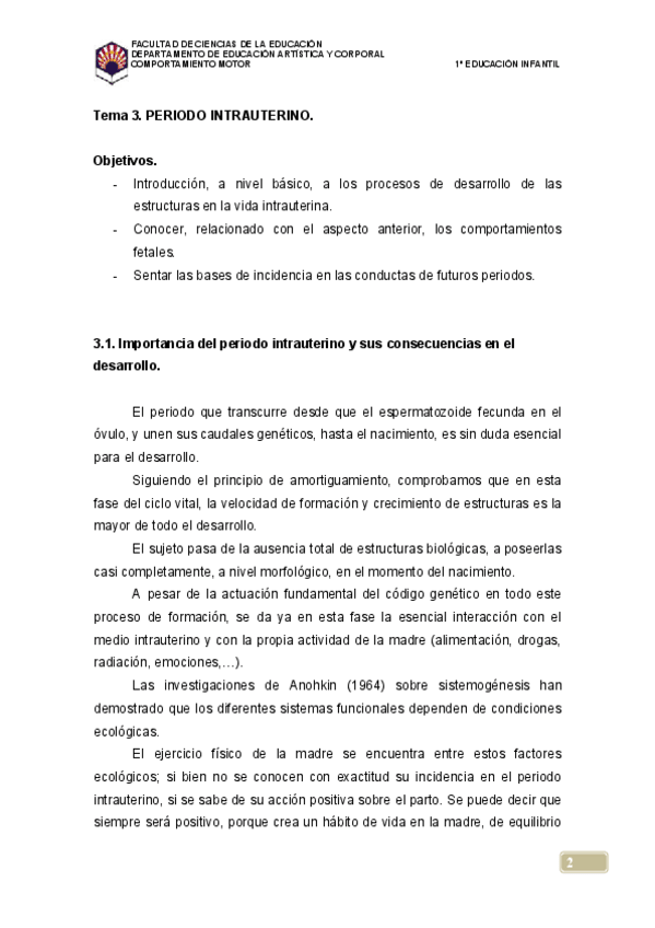 He publicado nuevos apuntes de 1º Comportamiento Motor en el Niño y la Niña de 0 a 6 Años: Tema3.Periodointrauterino.pdf