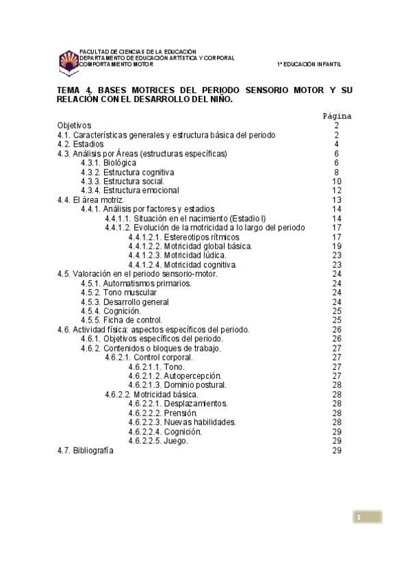 He publicado nuevos apuntes de 1º Comportamiento Motor en el Niño y la Niña de 0 a 6 Años: C.M-tema-4.pdf