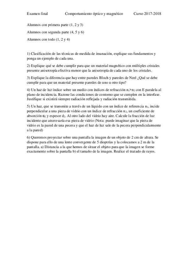 He publicado nuevos examenes de 2º Comportamiento óptico y Magnético: Examen final.pdf