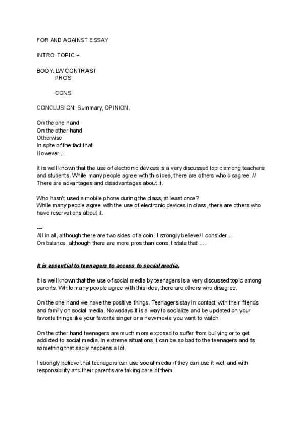 He publicado nuevos apuntes de 1º Comprensión e Interpretación de Textos Académicos en Lengua Inglesa: FOR-AND-AGAINST-ESSAY.pdf