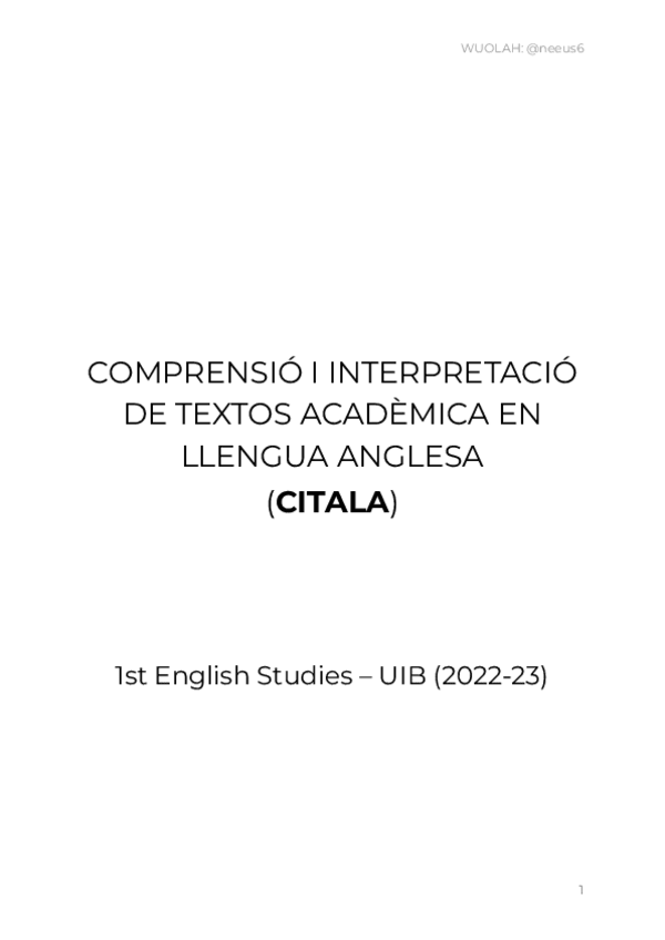 He publicado nuevos apuntes de 1º Comprensión e Interpretación de Textos Académicos en Lengua Inglesa: CITALA (Comprensió i Interpretació de Textos Acadèmics en Llengua Anglesa)