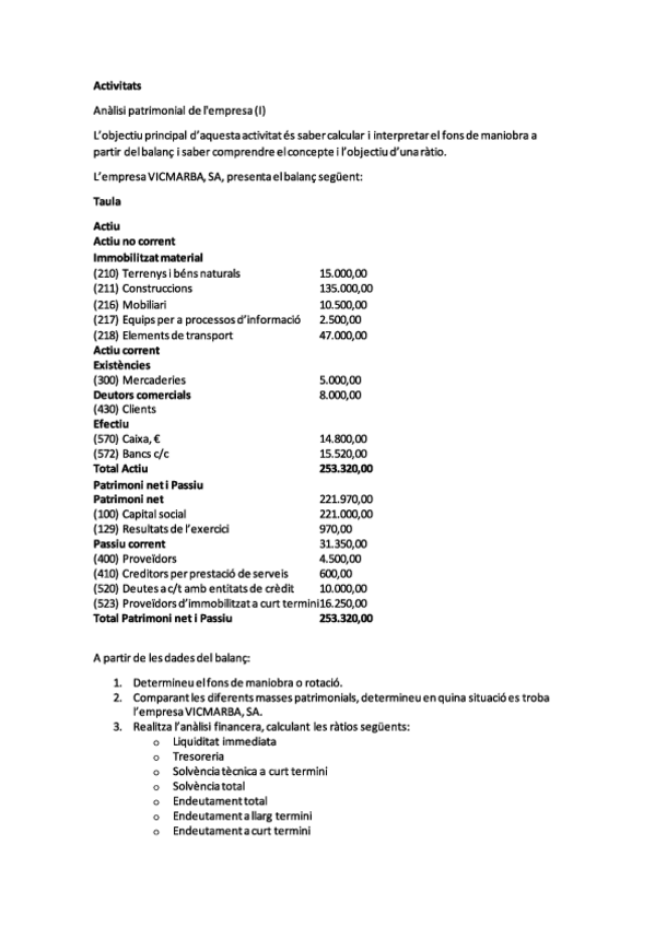 Exercicis BLOC I. Teoria de l'estructura patrimonial