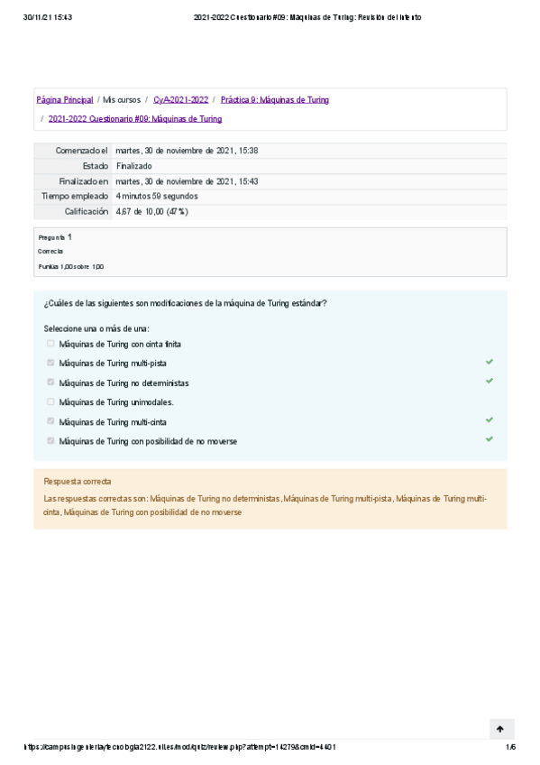 Cuestionarios de Computabilidad y Algoritmia