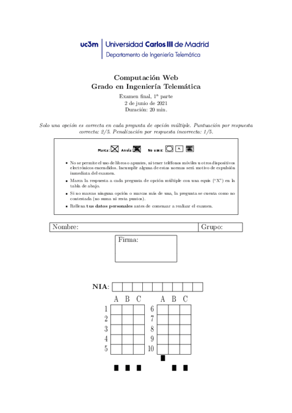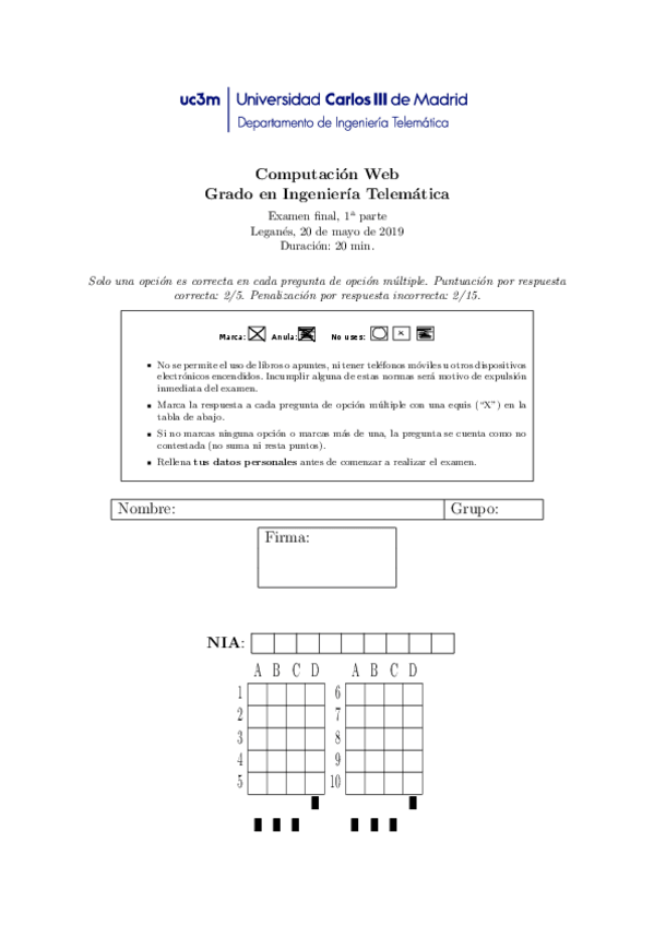 He publicado nuevos examenes de 4º Computación Web: Parcial 1