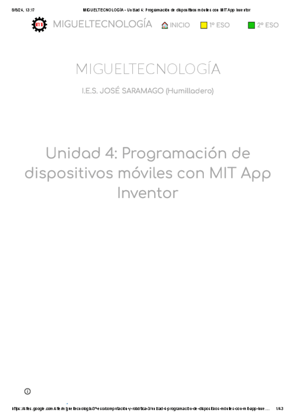 He publicado nuevos apuntes de 1º Computación y Robótica: INFORMACIONWEBCOMPUTACIONYROBOTICA1ESO.pdf