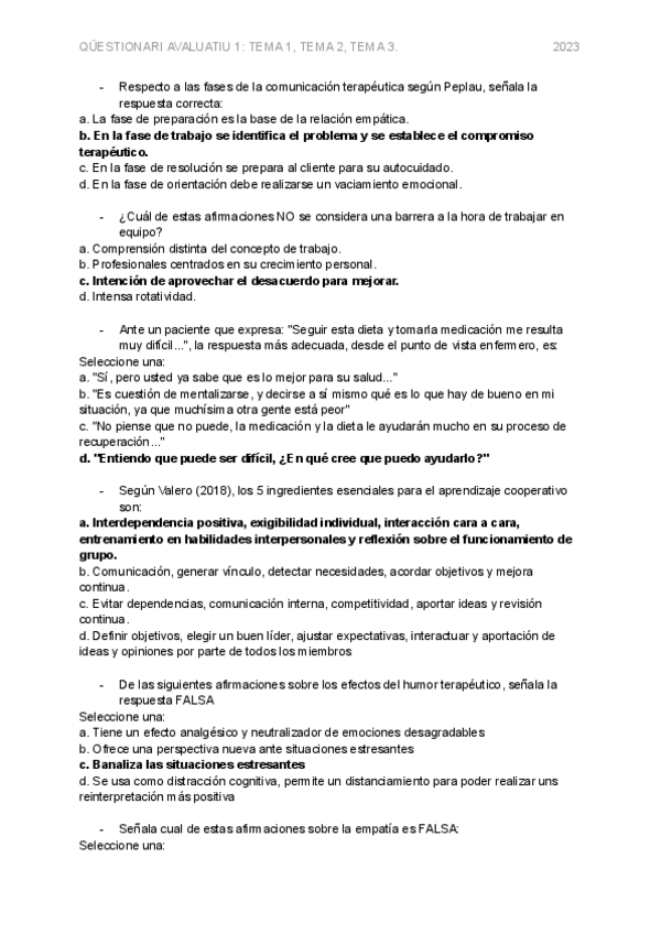He publicado nuevos examenes de 2º Comunicació Terapèutica: Questionari-2023.pdf