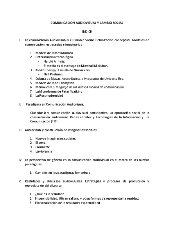 Temario Comunicación Audiovisual y Cambio Social 2022/23