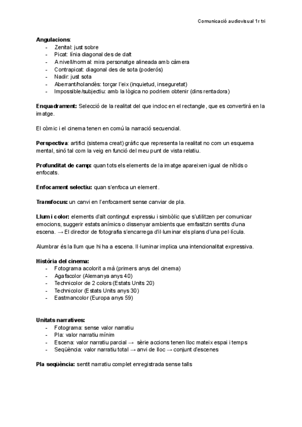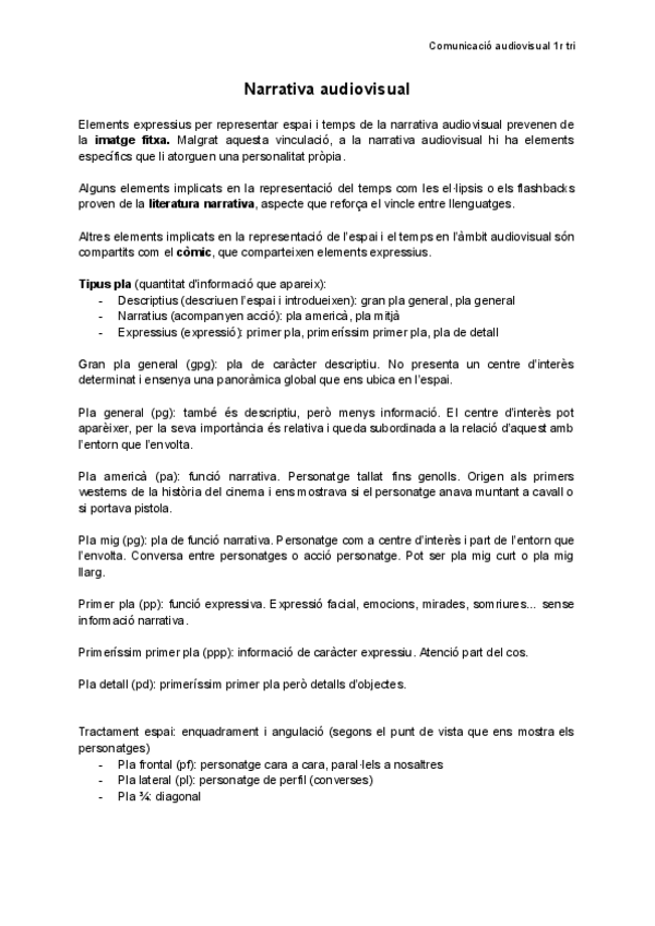Apuntes de comunicación audiosvisual de 1o de bachillerato en CATALAN