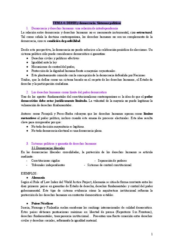 TEMA 4: Derechos humanos y democracia. Sistemas políticos COMPLETO