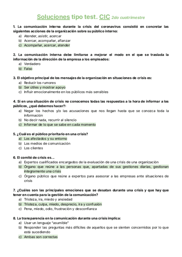 Preguntas y Soluciones Tipo Test. CIC