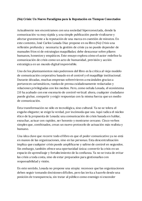 Ensayo libre (NO) Crisis de Jose Carlos Losada, suele pedirlo para presentarse a alguno de los exámenes.