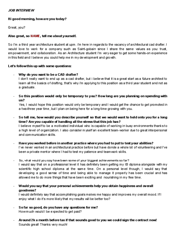 JOB INTERVIEW (nota 9)