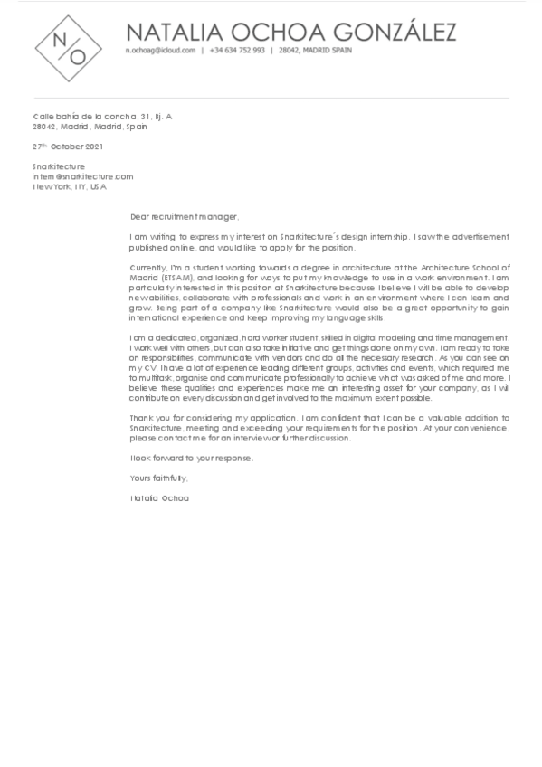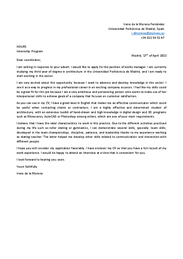 CV and COVER LETTER (nota cv 9 letter 8)