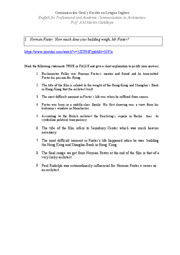He publicado nuevos ejercicios de 3º Comunicación Oral y Escrita en Lengua Inglesa: 1.-Norman-Foster-video-true-or-false.pdf