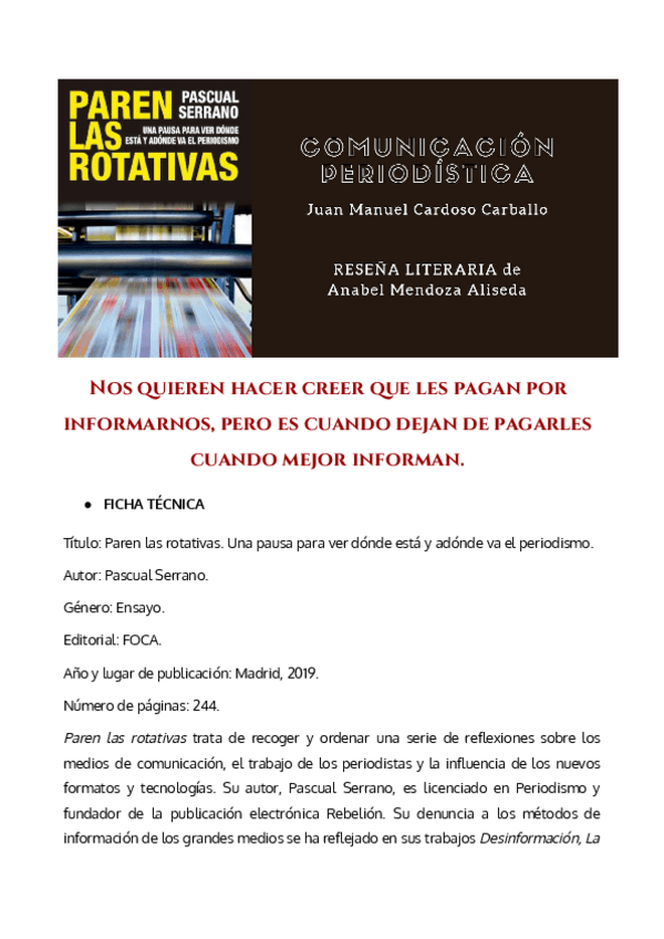 He publicado nuevos trabajos de 1º Comunicación Periodística I: Critica-libro.pdf