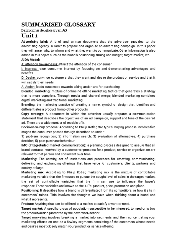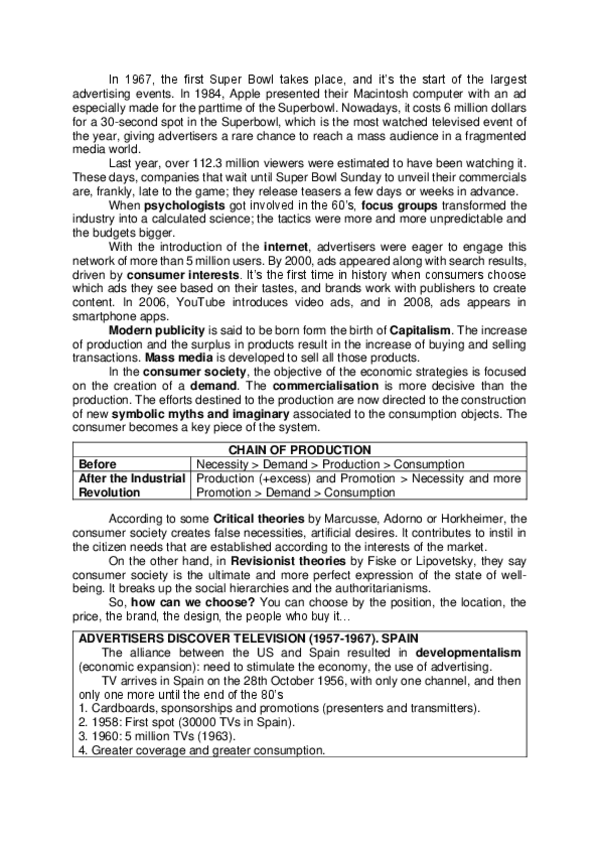 He publicado nuevos apuntes de 1º Comunicación Publicitaria: Advertising-Summary.pdf