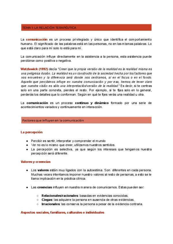Apuntes de comunicación terapéutica completos (1-6)