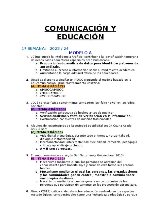 EXAMENES RESUELTOS AÑO 2023-2024 COMUNICACIÓN Y EDUCACIÓN
