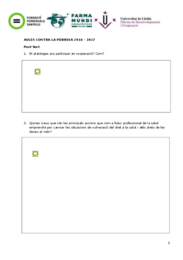 He publicado nuevos examenes de 2º Comunicación y Medicina Comunitaria: Cuestionario-aulas-post-test.pdf