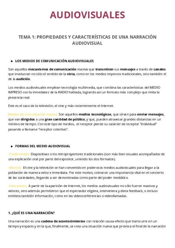 Apuntes de toda la teoría de Medios Audiovisuales con todo estos apuntes pude sacar un 9 de nota final.