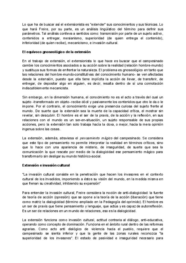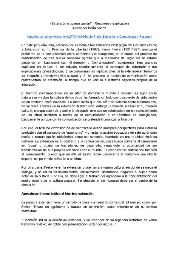 Resumen y explicación del libro "¿extensión o comunicación?" de Paulo Freire realizado por Alexander Peña Sáenz .