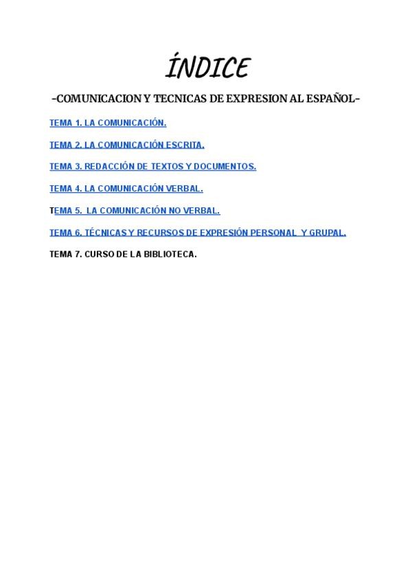 Temas del (1-7) Comunicación y técnicas de expresión al español. Primer año Contabilidad y finanzas.