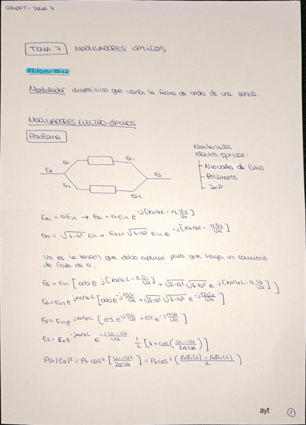 He publicado nuevos apuntes de 4º Comunicaciones Ópticas: T7.-Moduladores-opticos.pdf
