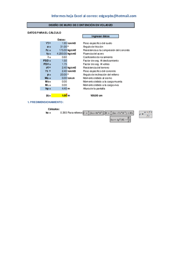 He publicado nuevos ejercicios de 9º Concreto Armado II: MURO-CONTENCION-VOLADIZO.pdf