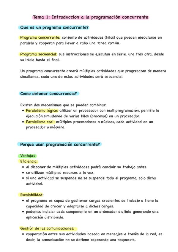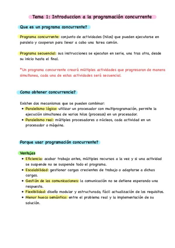 Resumen de la Introducción a la Programación Concurrente para ti, para que lo entiendas todo y saques un puto 10.