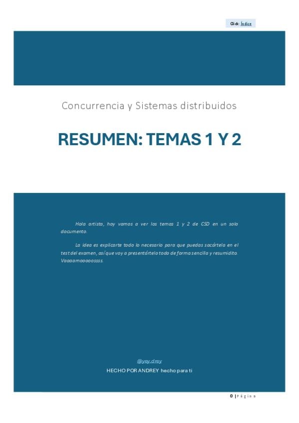 He publicado nuevos apuntes de 2º Concurrencia y sistemas distribuidos: Resúmenes por Temas CSD (Todo el Curso)