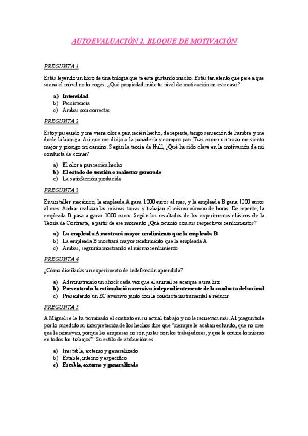 Aquí hay varias autoevaluaciones y el examen de 2024 de aprendizaje y motivación, con sus respuestas