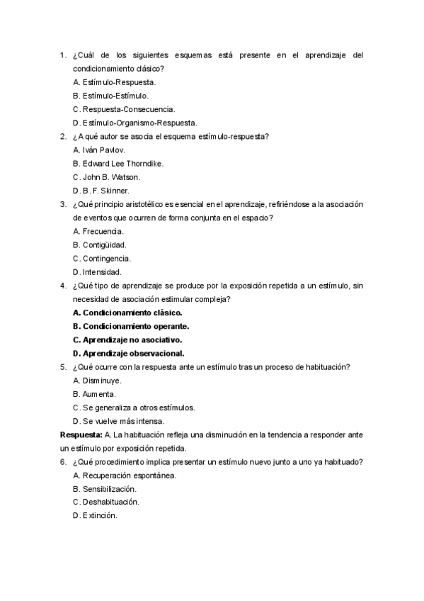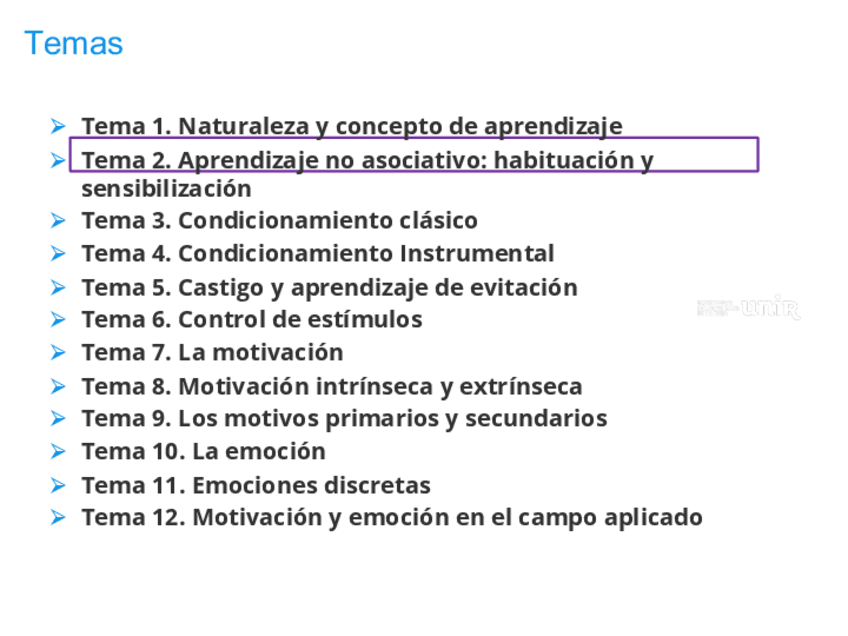 Aprendizaje no asociativo: habituación, sensibilización y teorías de los procesos duales y del proceso oponente.