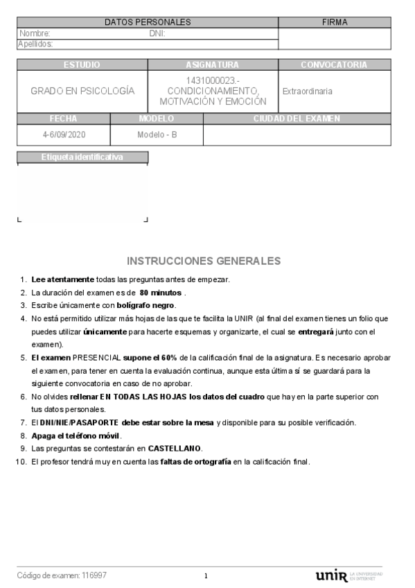 He publicado nuevos examenes de 3º Condicionamiento, Motivación y Emoción: ModeloBextra.pdf