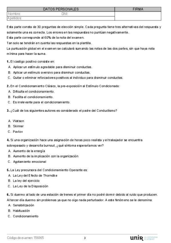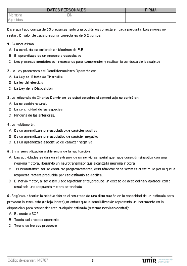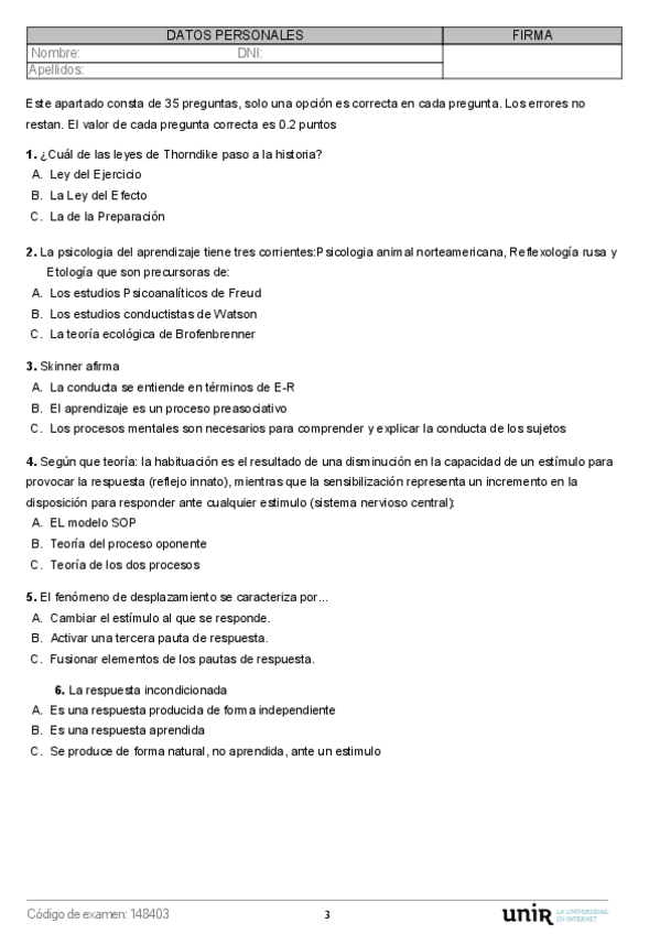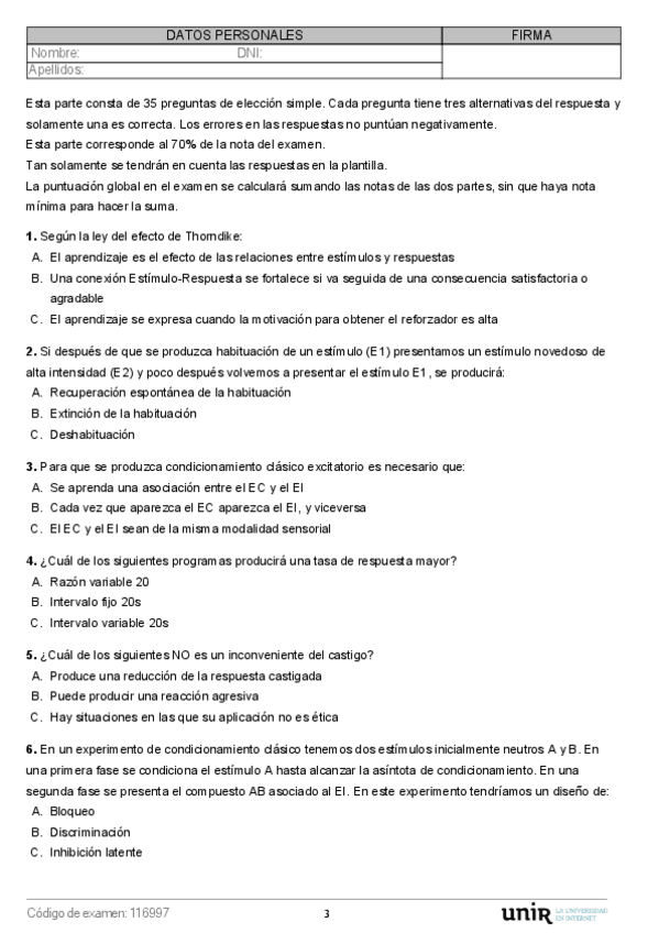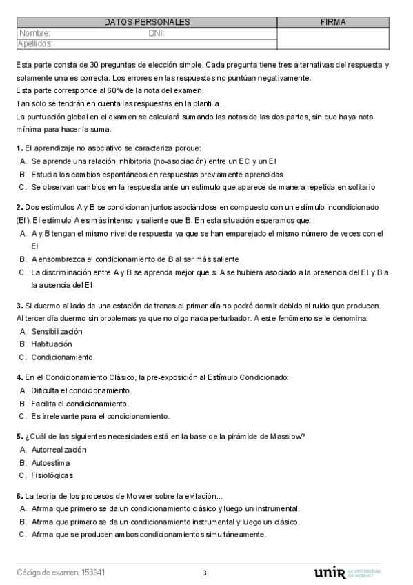 He publicado nuevos examenes de 3º Condicionamiento, Motivación y Emoción: ModeloA.pdf