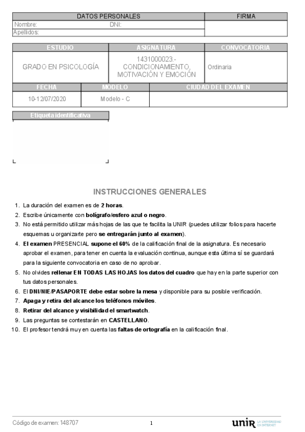 He publicado nuevos examenes de 3º Condicionamiento, Motivación y Emoción: ModeloC.pdf