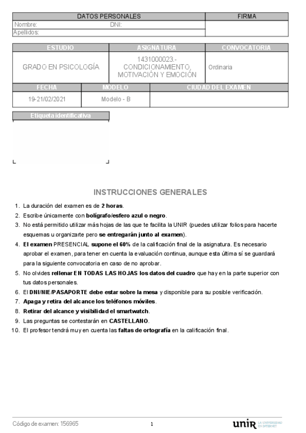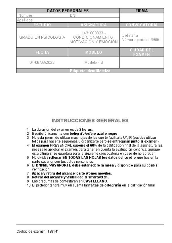 He publicado nuevos examenes de 3º Condicionamiento, Motivación y Emoción: ModeloB.pdf