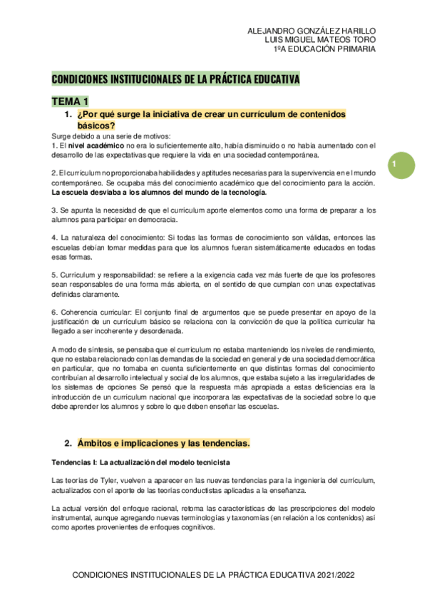 He publicado nuevos apuntes de 1º Condiciones Institucionales de la Práctica Educativa: Preguntas Condiciones Institucionales