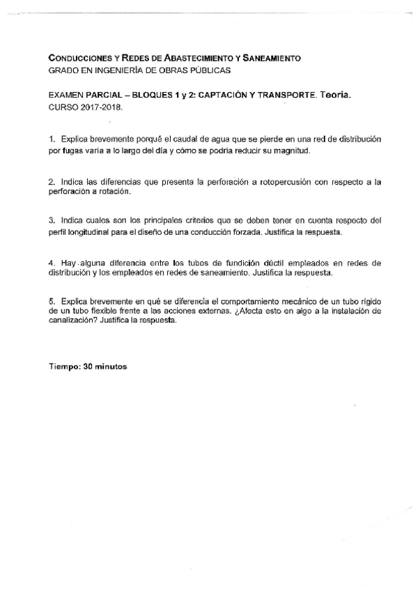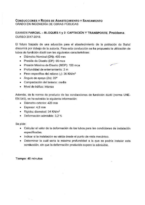 He publicado nuevos examenes de 3º Conducciones y redes de abastecimiento y saneamiento: Examen teorico conducciones Boque 1 y 2. 2017-2018.pdf