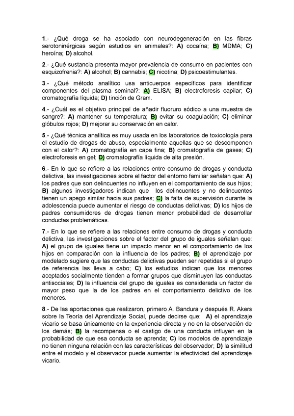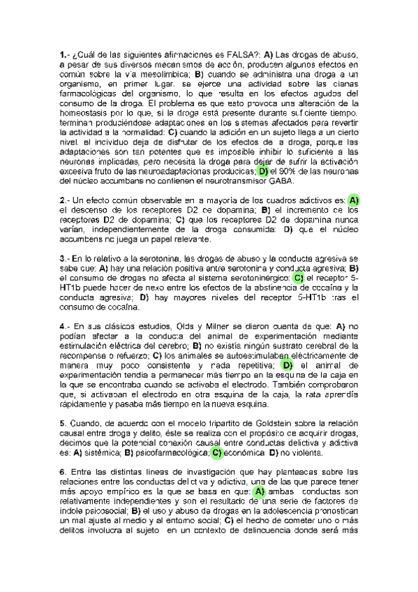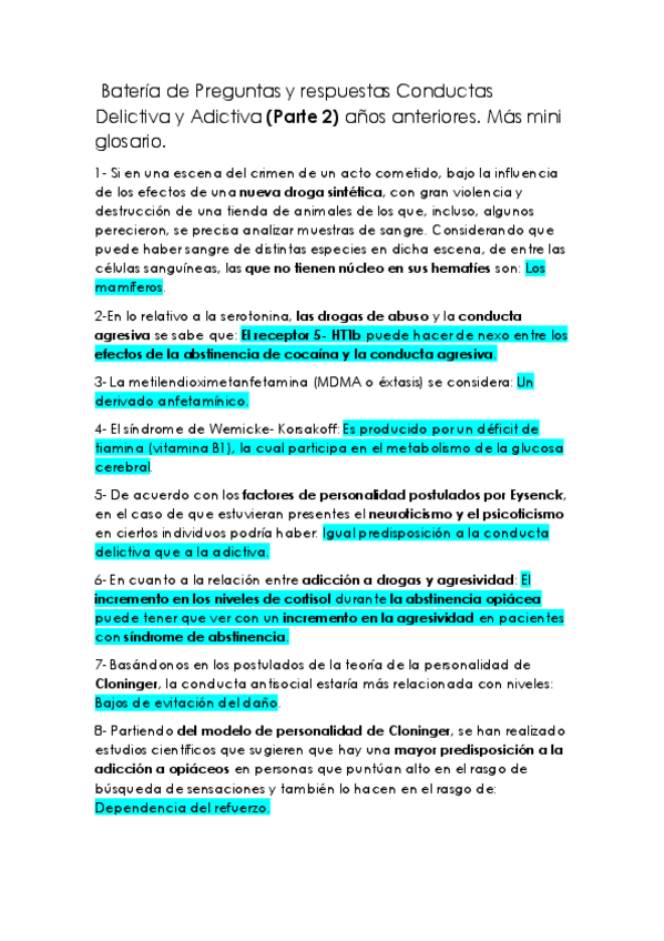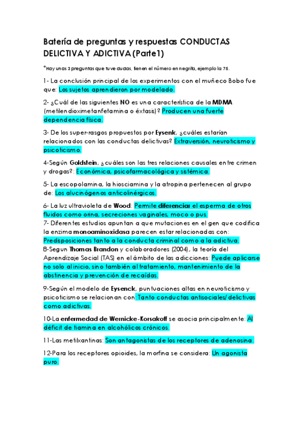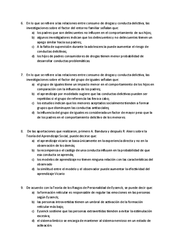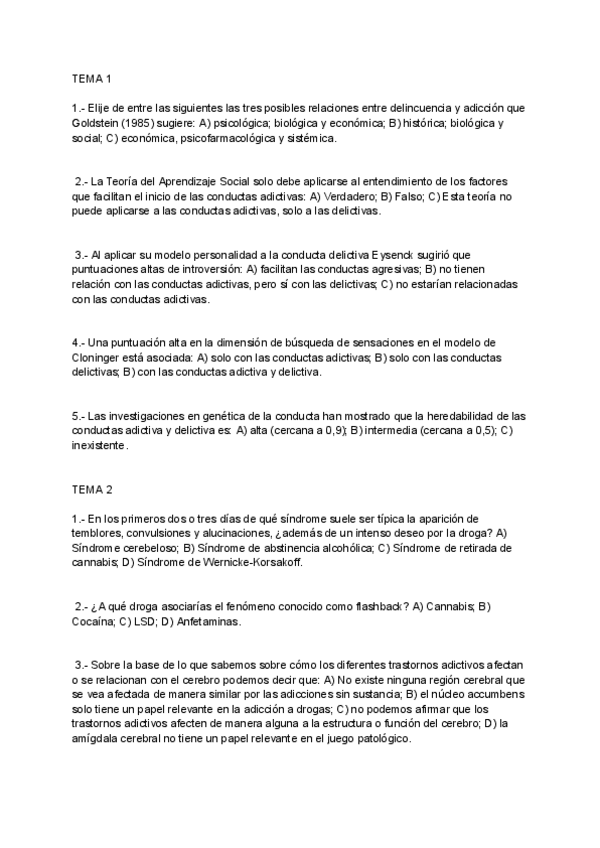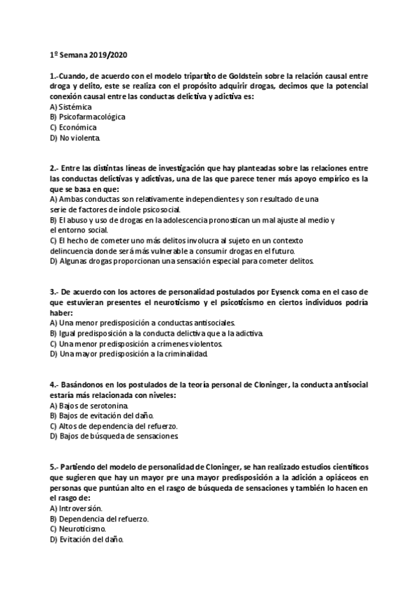 Batería de preguntas de exámenes anteriores CONDUCTAS DELICTIVA Y ADICTIVA, cuarto curso, criminología UNED (Primera parte).