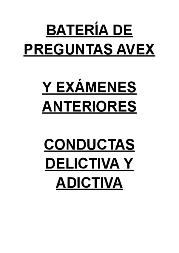 Batería de preguntas de exámenes anteriores CONDUCTAS DELICTIVA Y ADICTIVA, cuarto curso, criminología UNED (Primera parte).