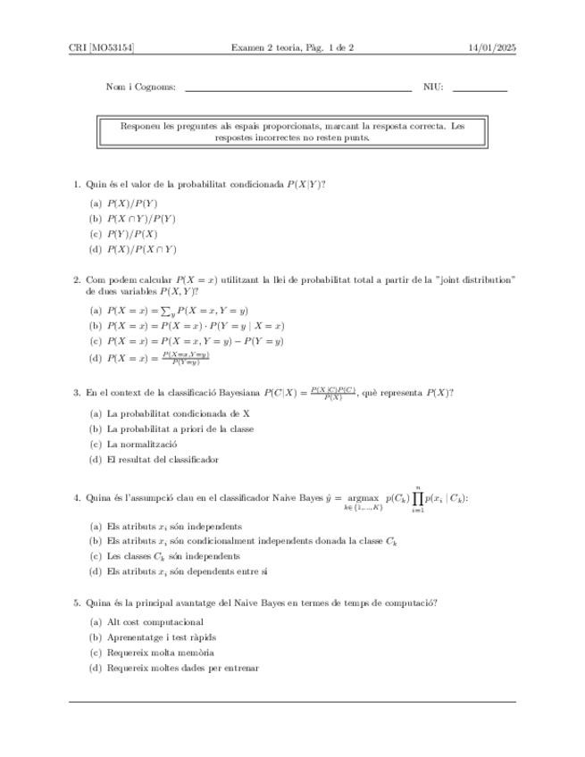 He publicado nuevos examenes de 3º Coneixement, Raonament i Incertesa: Examen1-amb-solucions-2024-2025-Problemes.pdf