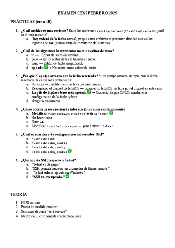 He publicado nuevos examenes de 3º Configuración y Evaluación de Sistemas Informáticos: EXAMEN-CESI-TEORIAPROBLEMAS.pdf