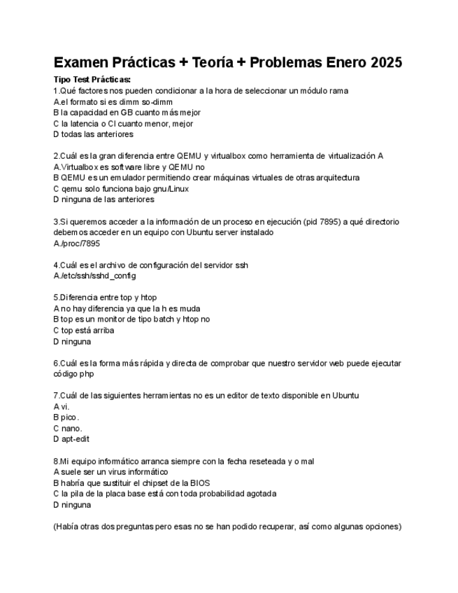 He publicado nuevos examenes de 3º Configuración y Evaluación de Sistemas Informáticos: Test-Examen-Practicas.pdf