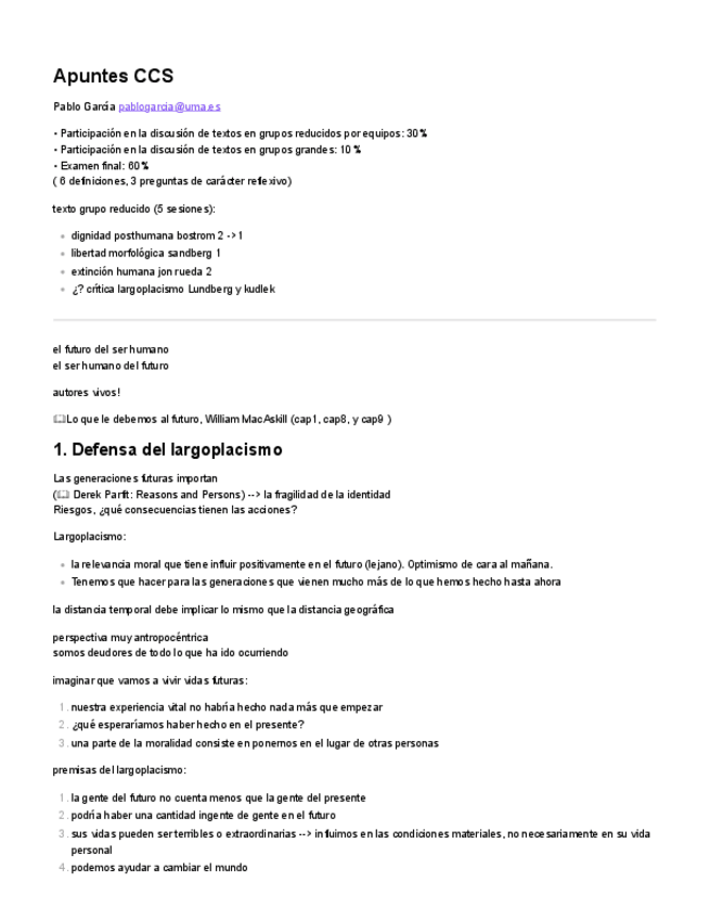 Es un resumen de los libros: Deudas Pendientes y Transhumanismo. Además, va añadido diversos apuntes de las clases