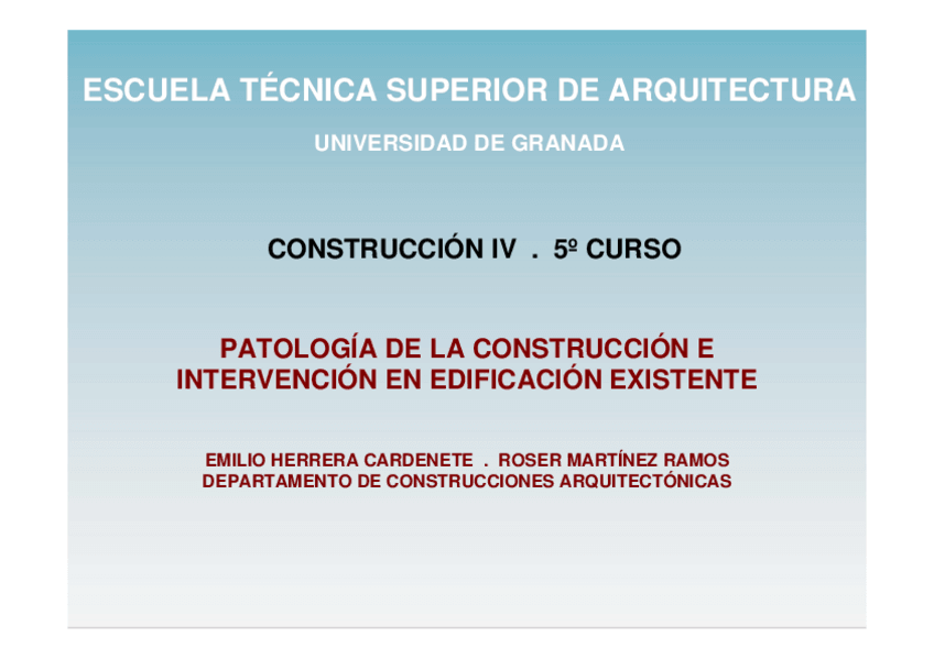 He publicado nuevos apuntes de 5º CONSTRUCCIÓN 4: PATOLOGÍA DE LA EDIFICACIÓN: RESUMENES.pdf