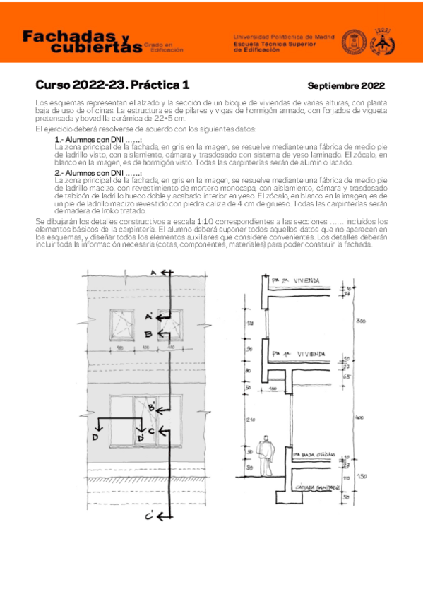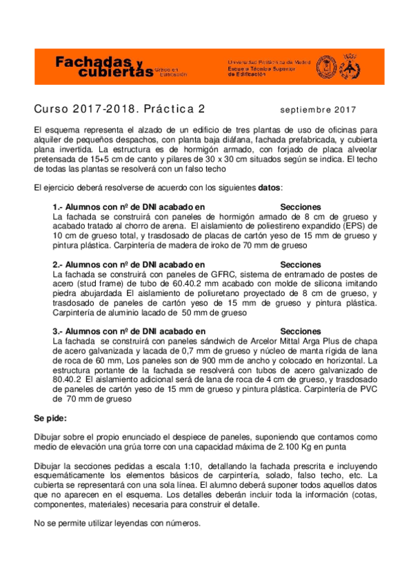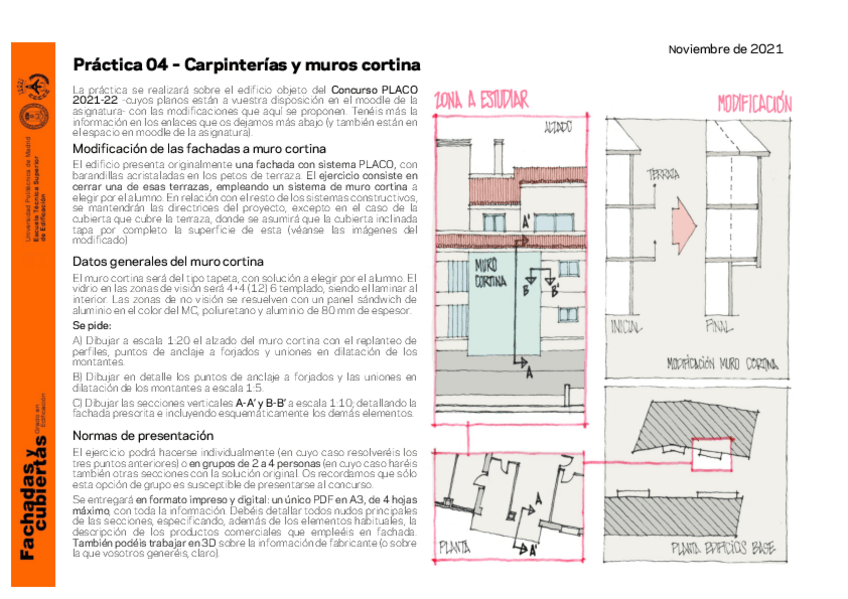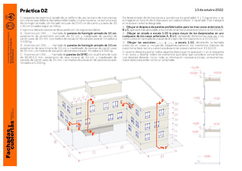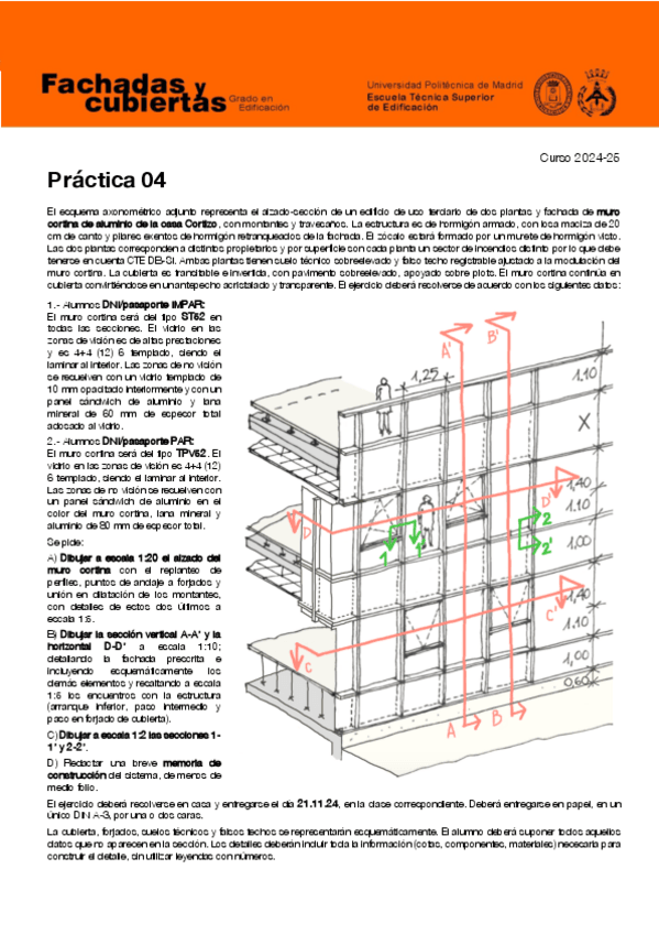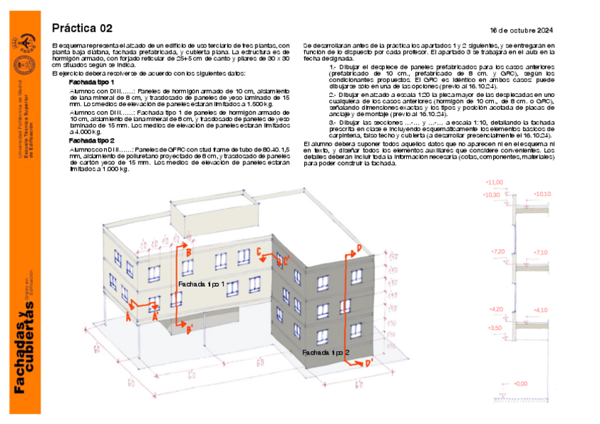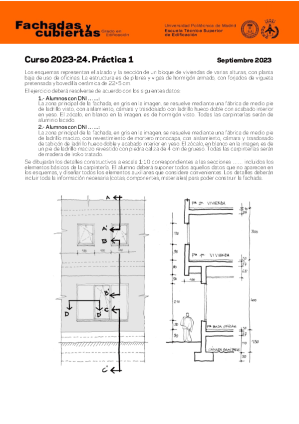 He publicado nuevos practicas de 3º CONSTRUCCIÓN DE CERRAMIENTOS DE FACHADA Y CUBIERTAS: Practica1Fachadas2023-24.pdf