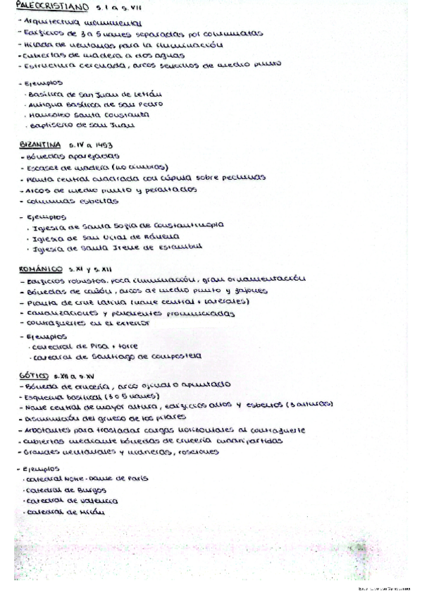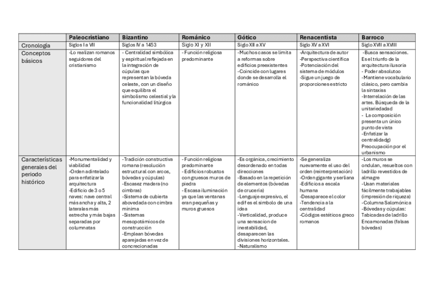 Características principales de las arquitecturas desde el Paleocristiano al Barroco