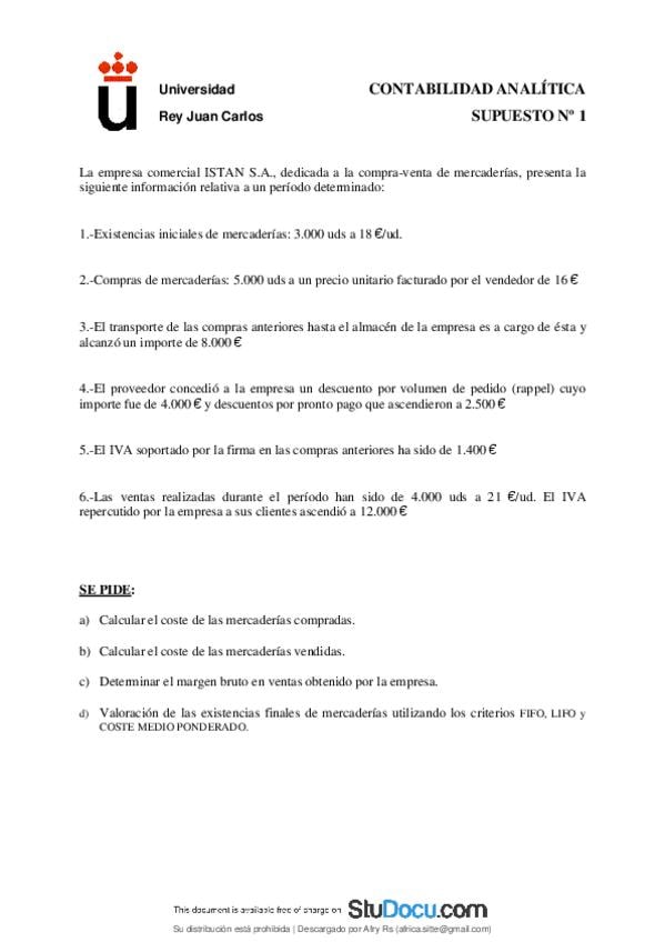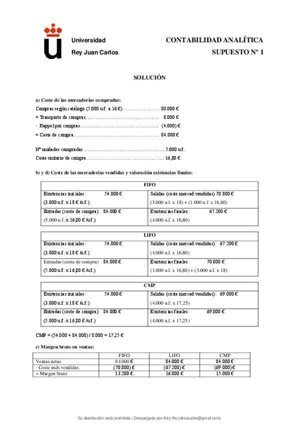 Todos los supuestos de Contabilidad Analitica de los profesores Carlos Alberto Fernández Álvarez y Patricia Miñambres Puig de la URJC